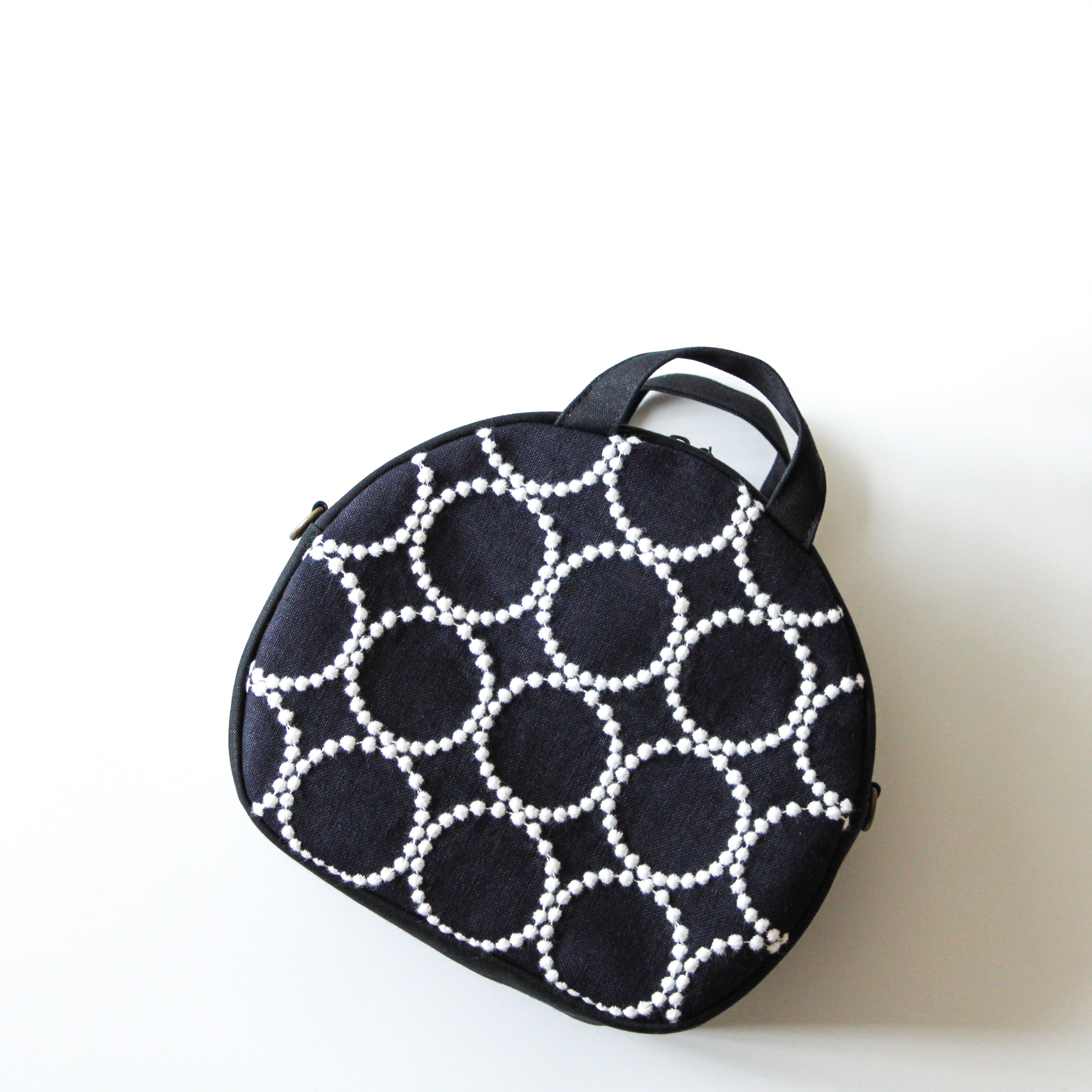 ミナペルホネンのtambourine生地を使った、ころんとしたラウンド型のバッグです。