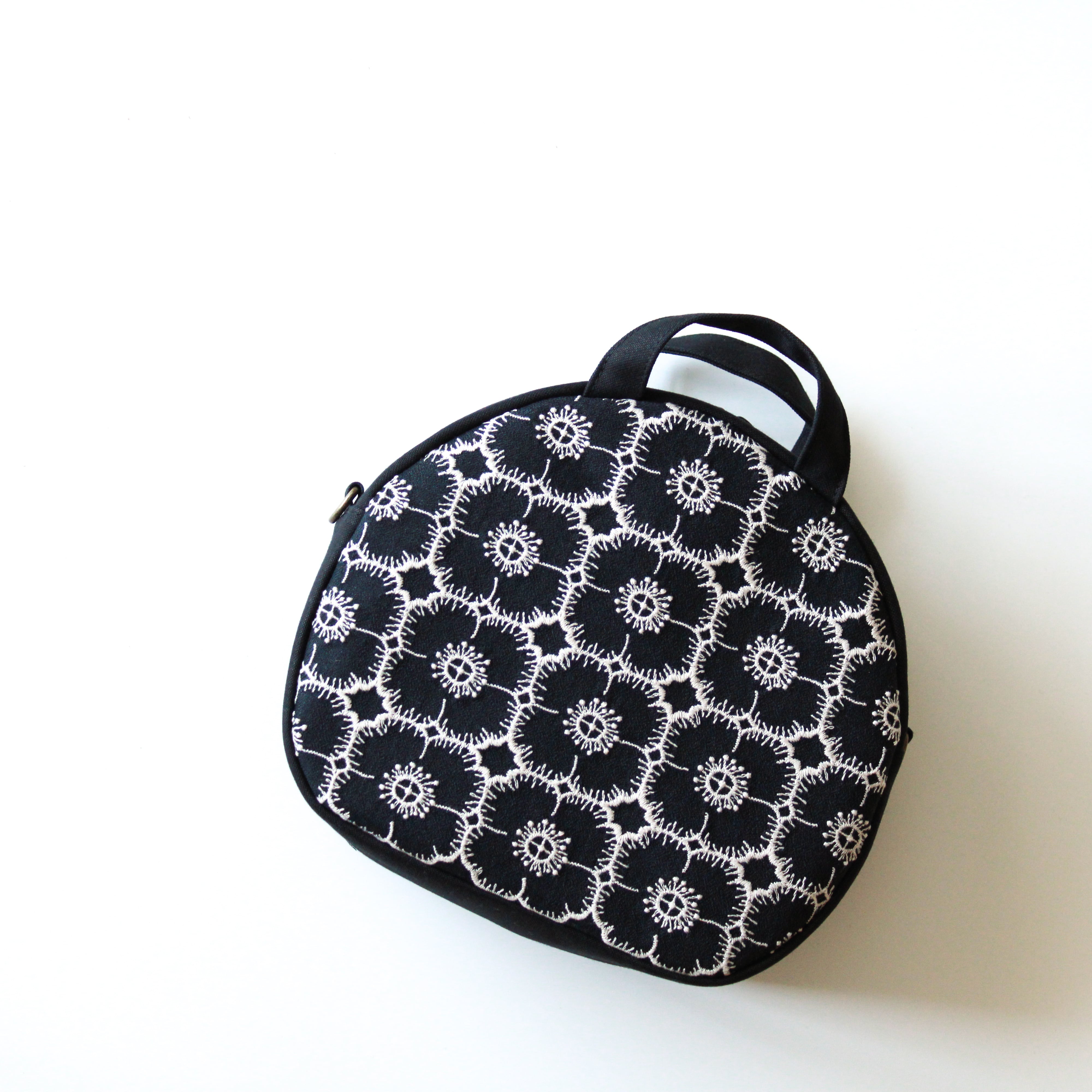 ミナペルホネンのanemone生地を使った、ころんとしたラウンド型のバッグです。