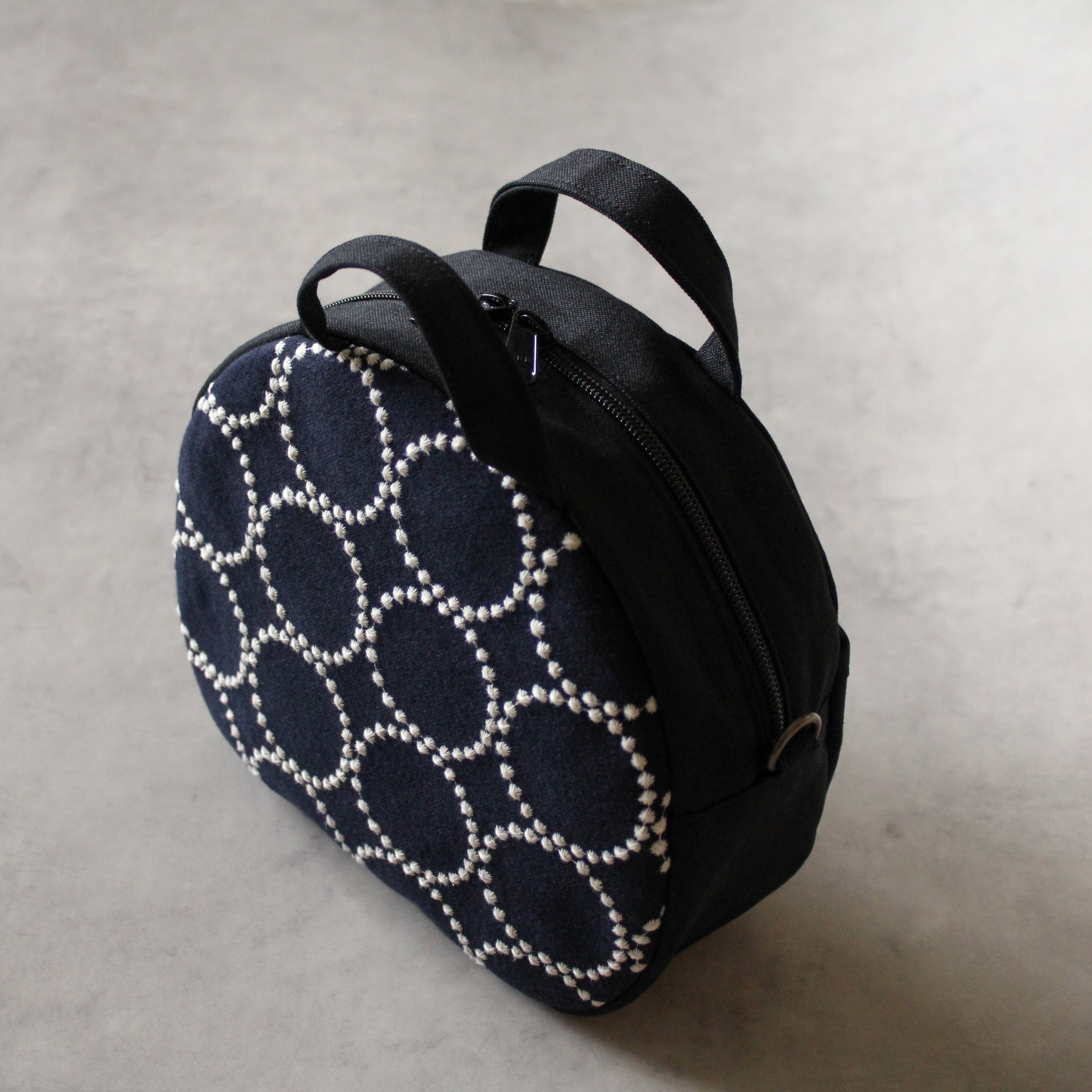 ラウンドバッグ tambourine navy ミナペルホネン生地使用