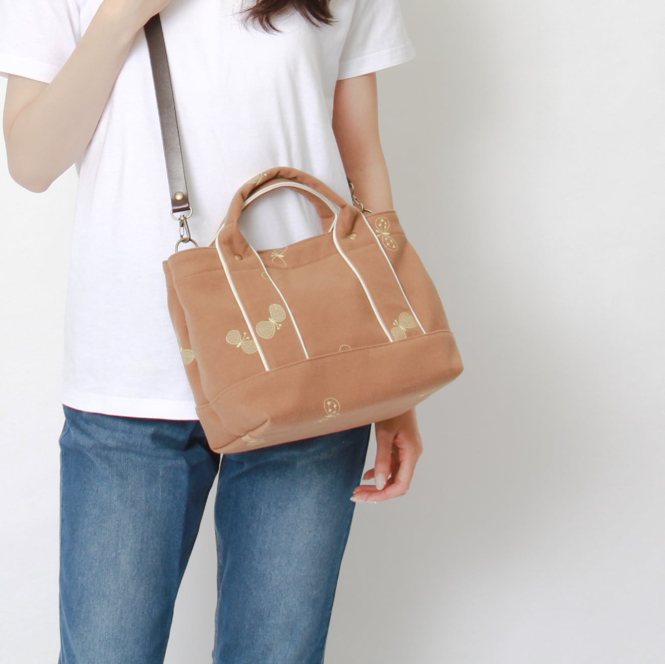 裏表で異なる色合いになっており、ちょうちょの刺繍が両面に現れる仕様。