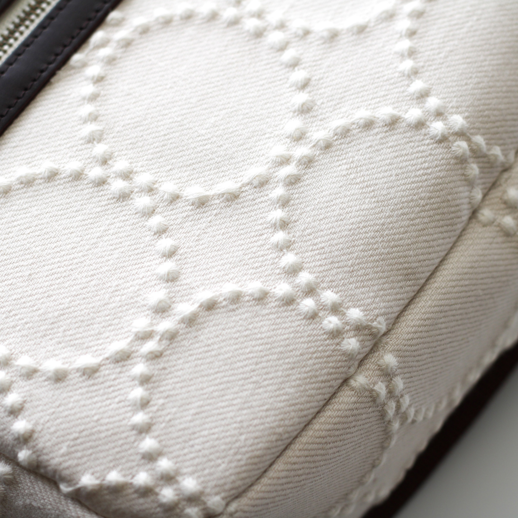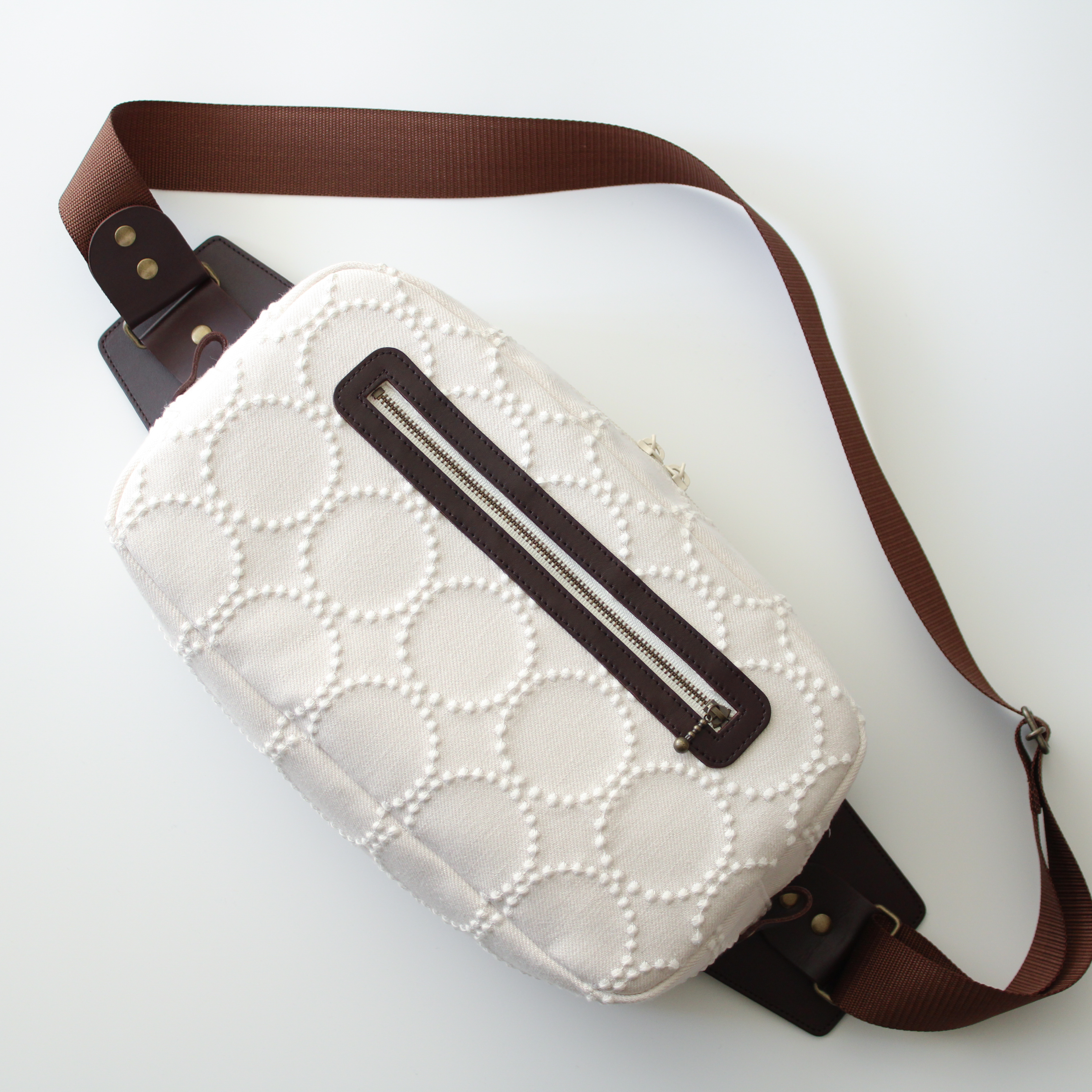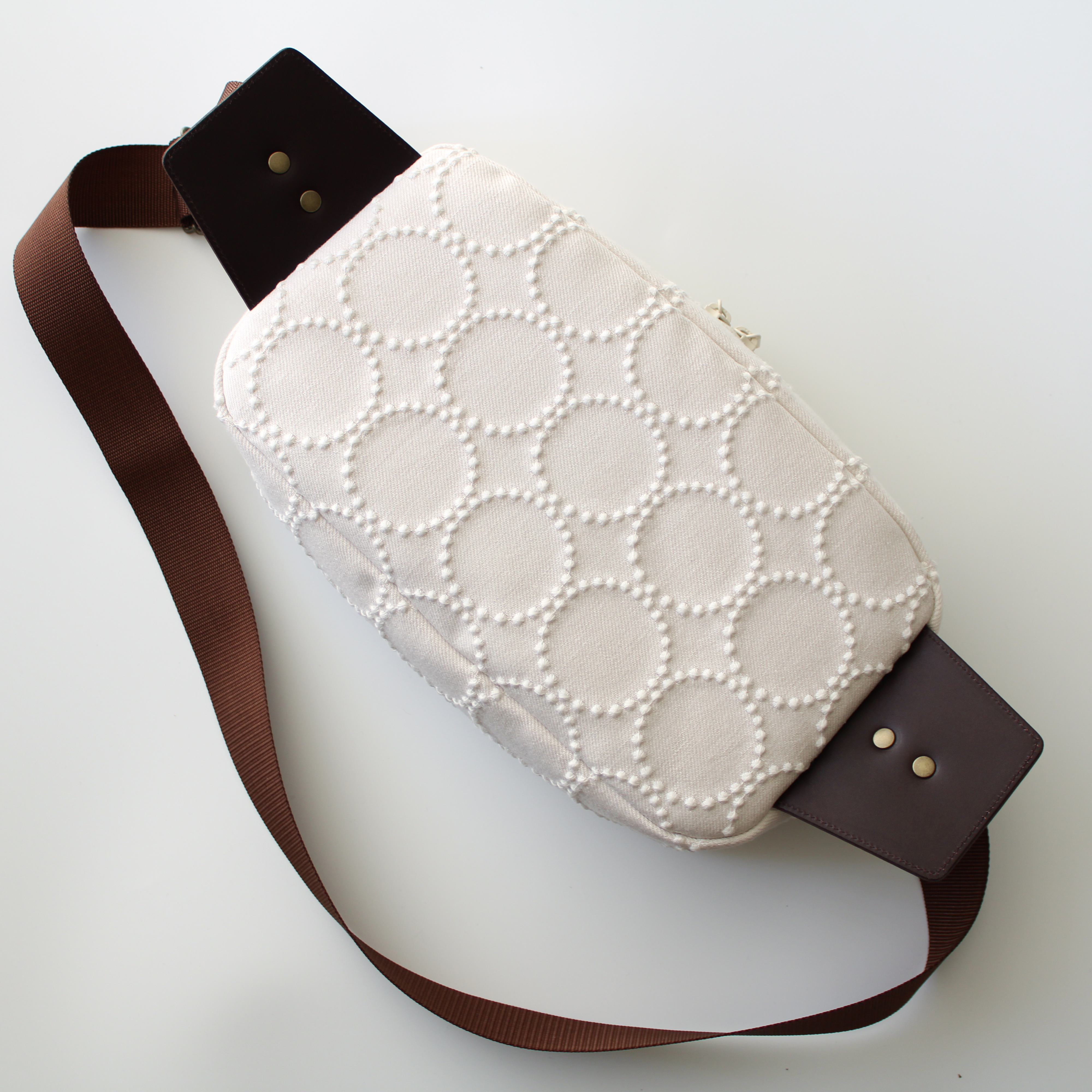 こちらは白いタンバリン刺繍の粒がよく映える生地を使っているので、本革とあわせて上品に仕上がっています✨