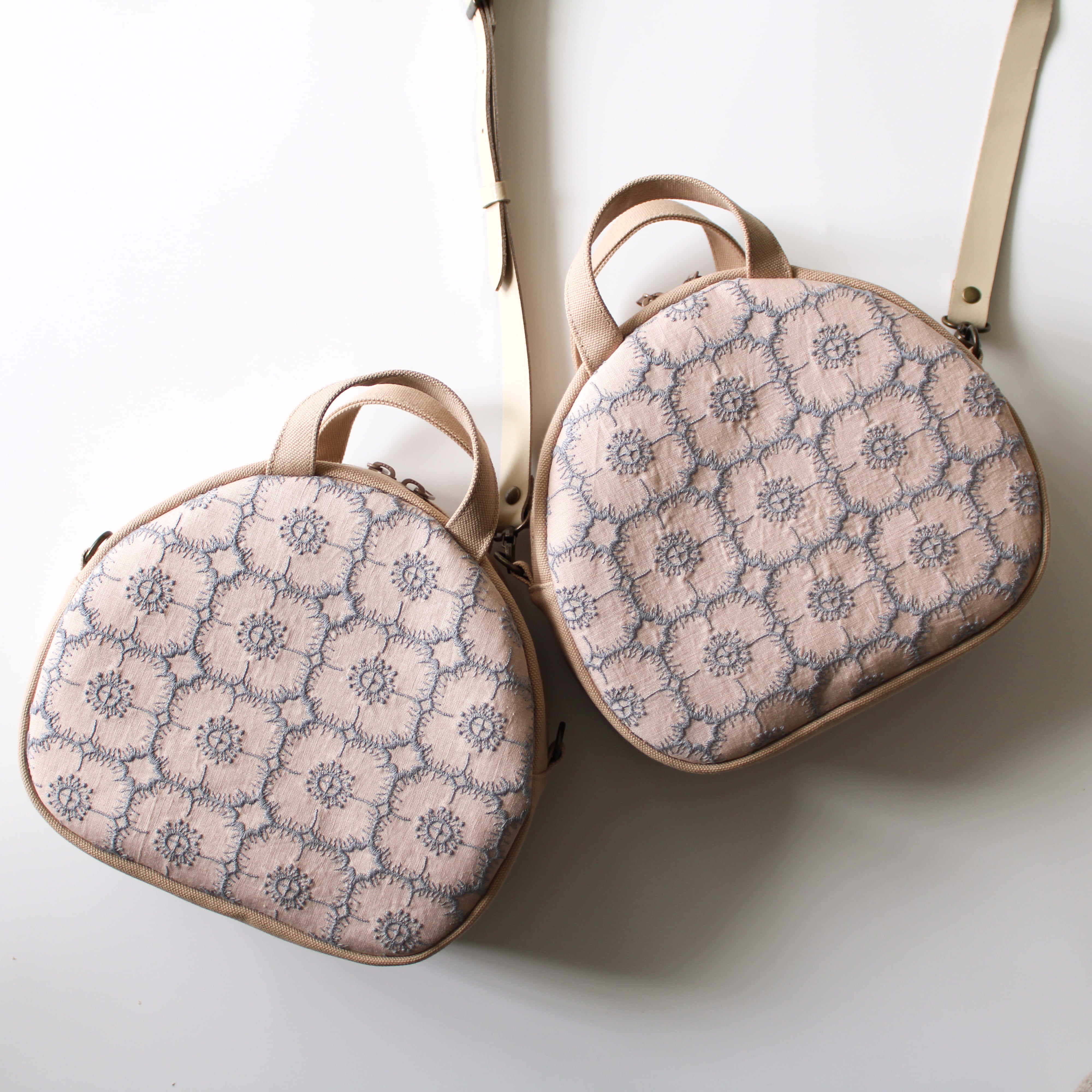 ミナペルホネンのanemone生地を使った、ころんとしたラウンド型のバッグです。