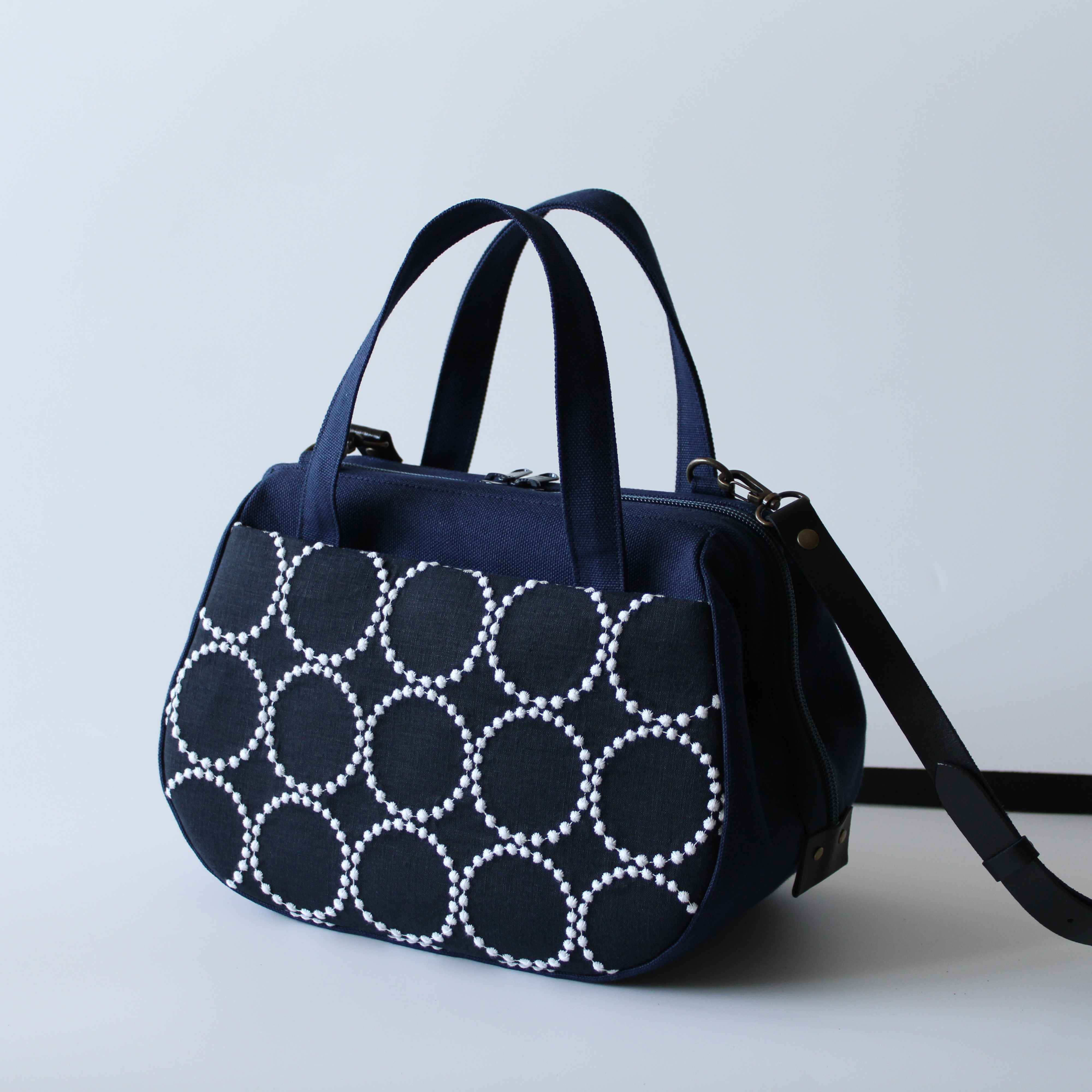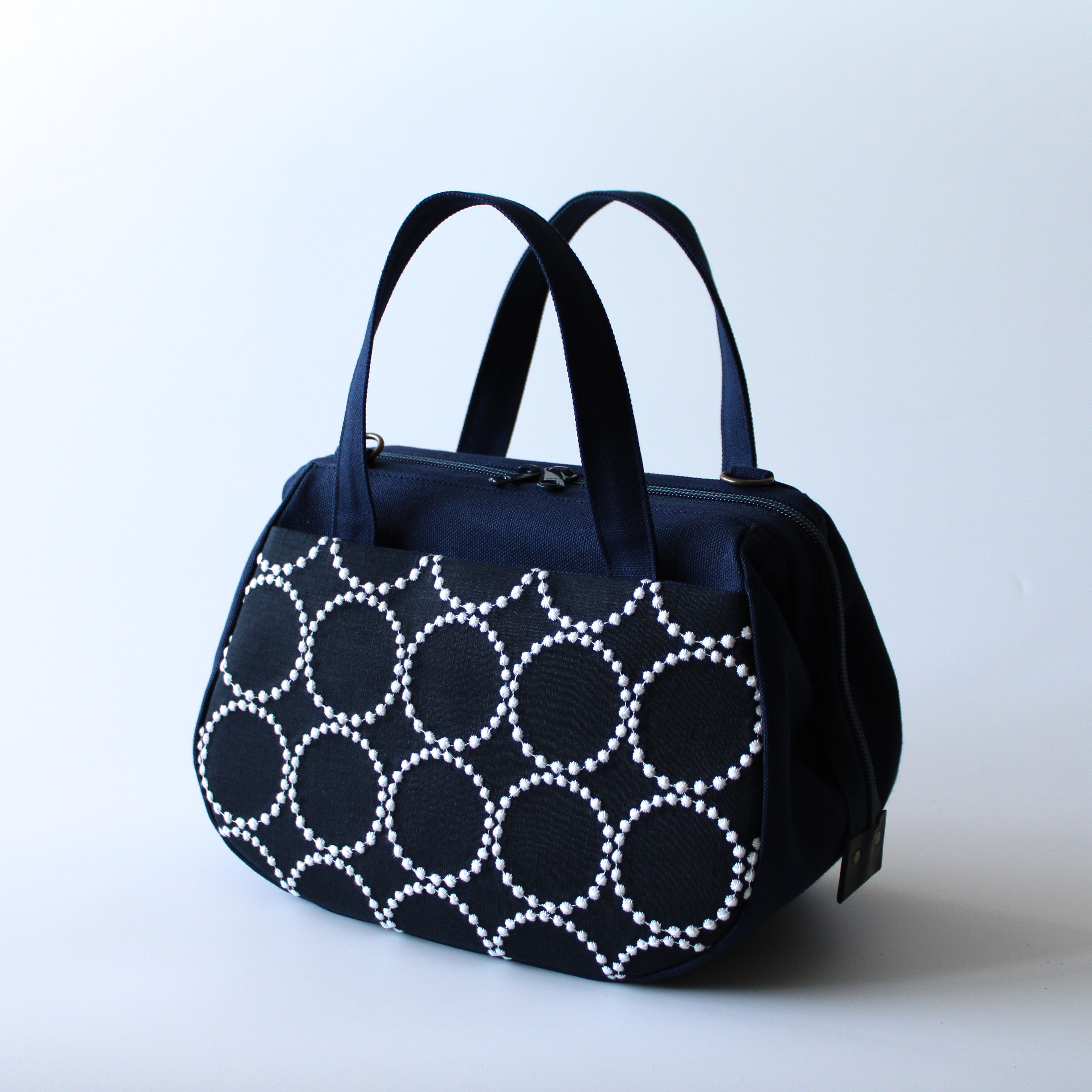 ぽってりボストンは本体生地をより分厚い帆布に変更したため、さらにしっかりとしたシルエットのバッグになっています。