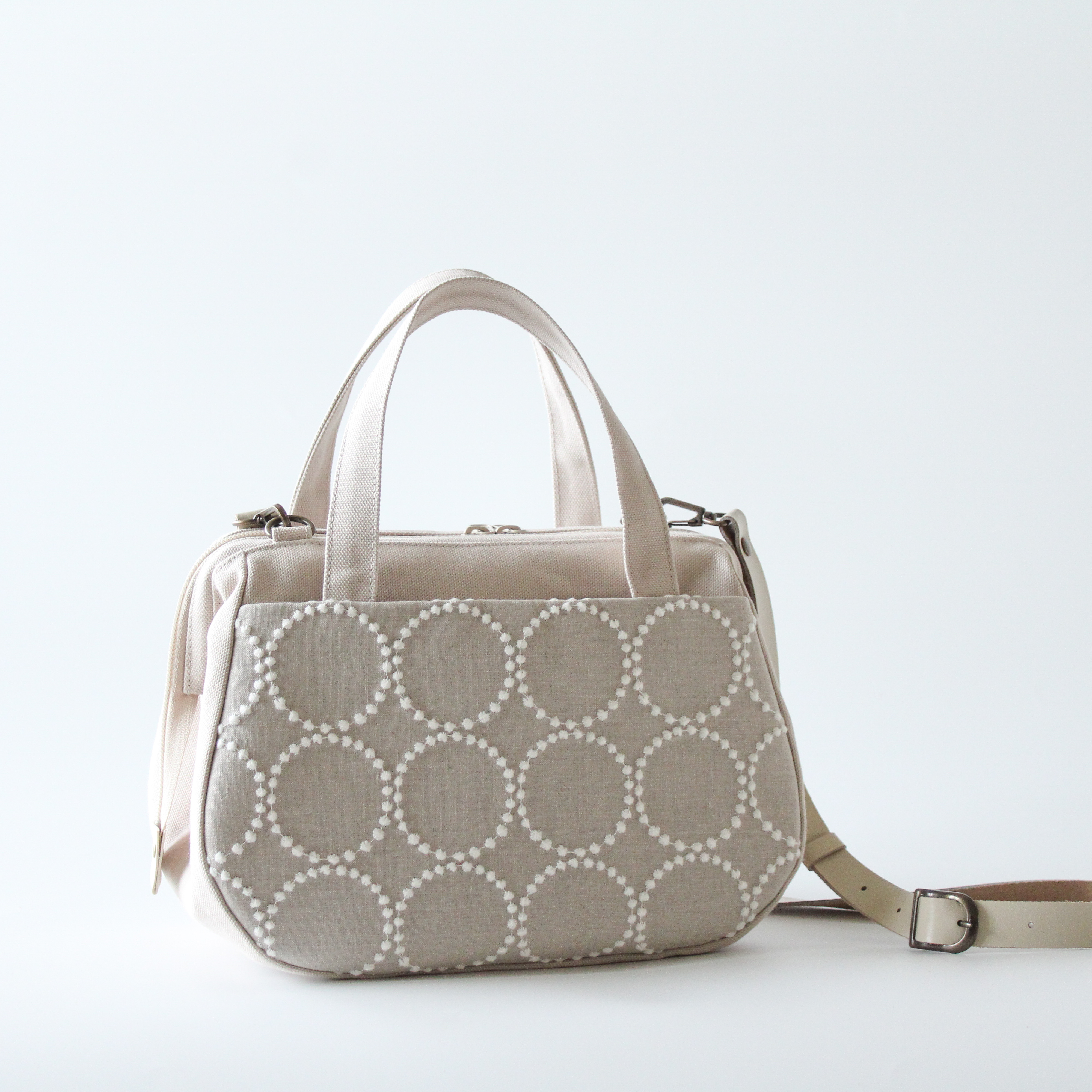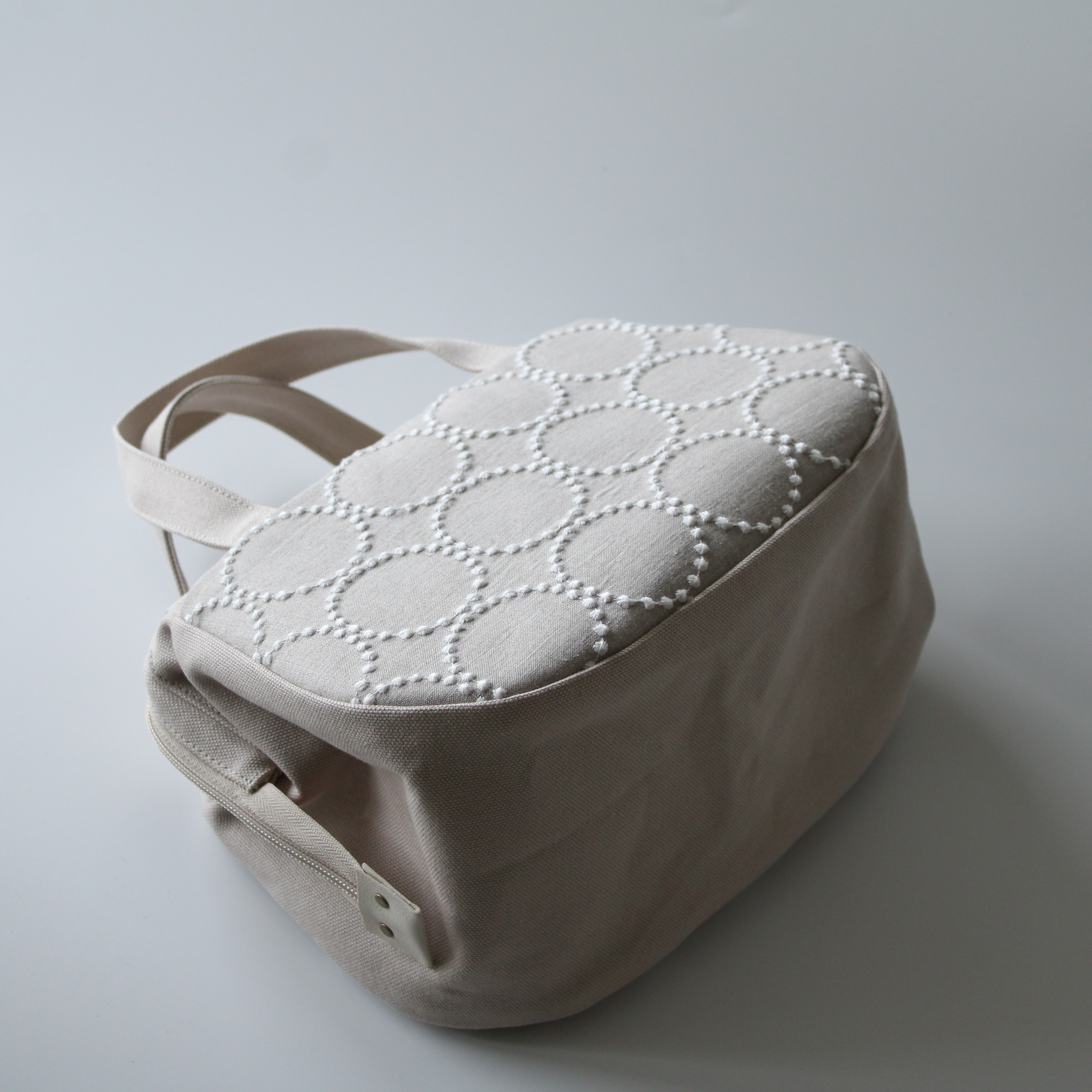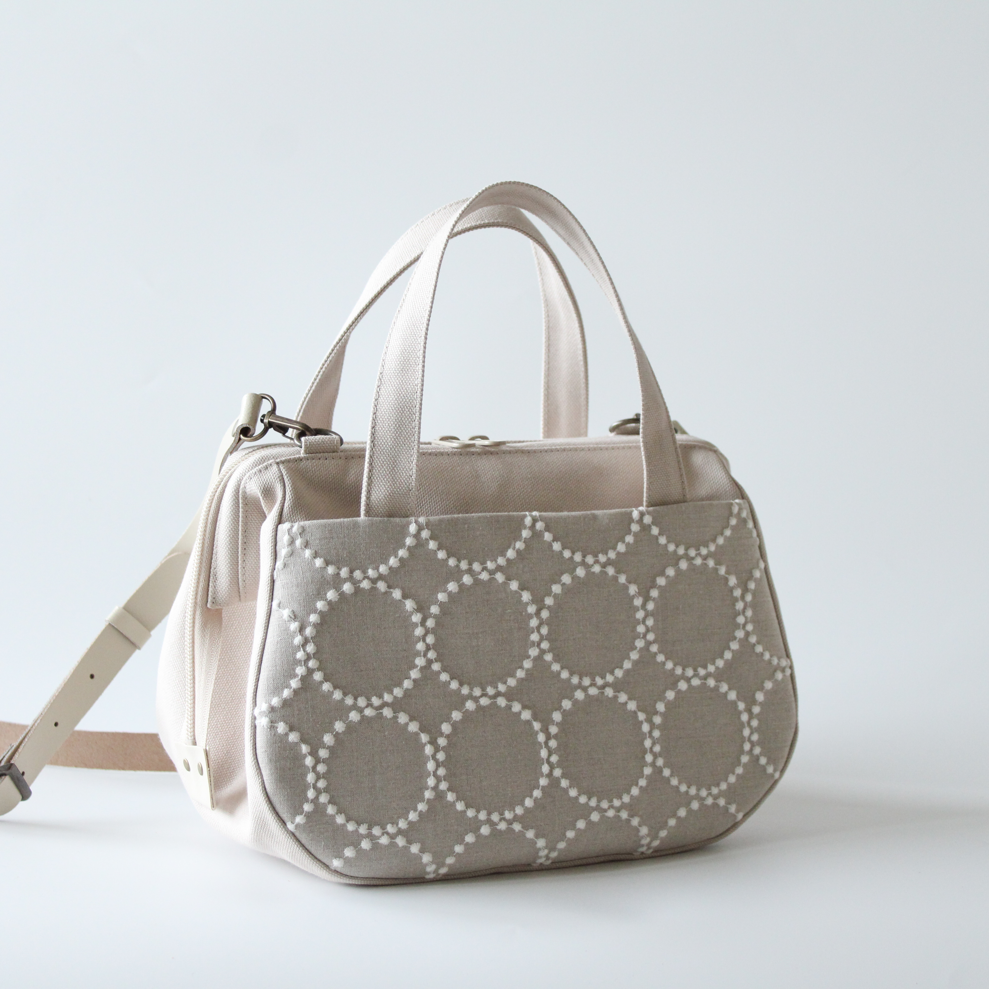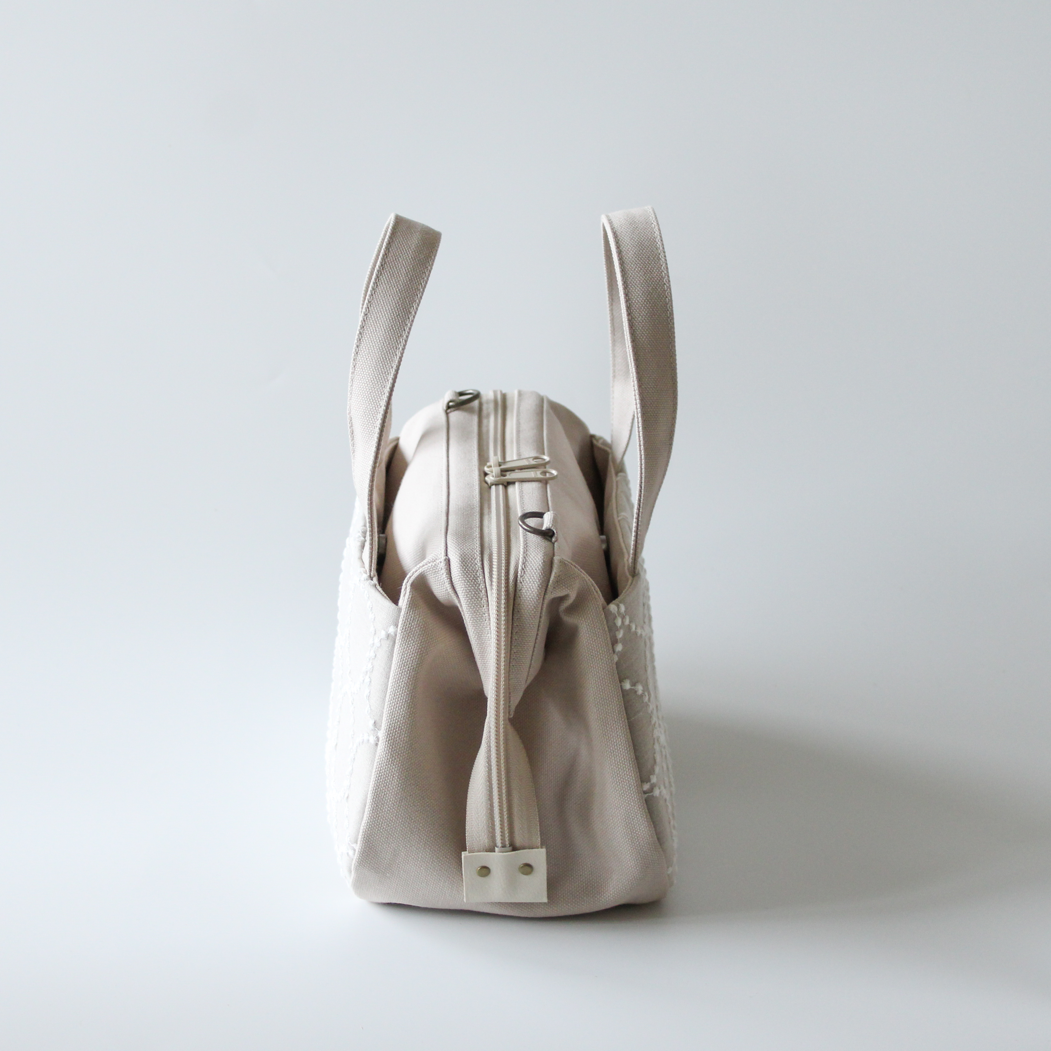 ぽってりボストンは本体生地をより分厚い帆布に変更したため、さらにしっかりとしたシルエットのバッグになっています。
